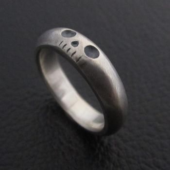 外側はシンプルな甲丸リング、内側にスカルをひそめての着用方法もオススメです。
