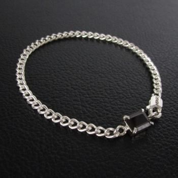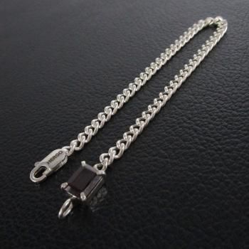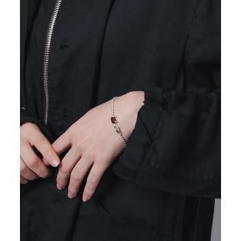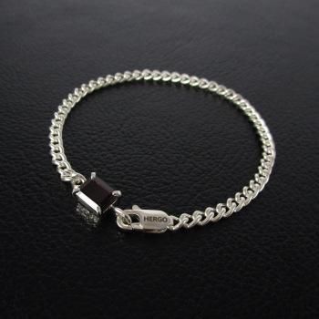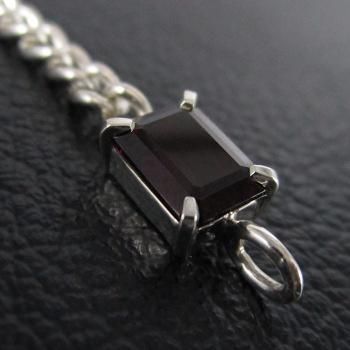 オクタゴンカットの“ガーネット”を一粒、留め付けたベーシックなチェーンブレスレット。